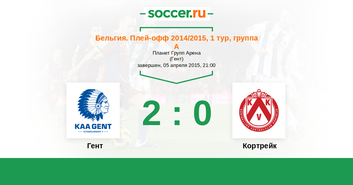 Бельгия. Про-Лига 03.05.2015 Кортрейк Логотип футбольный клуб Кортрейк 0:1 Логотип футбольный клуб Гент Гент