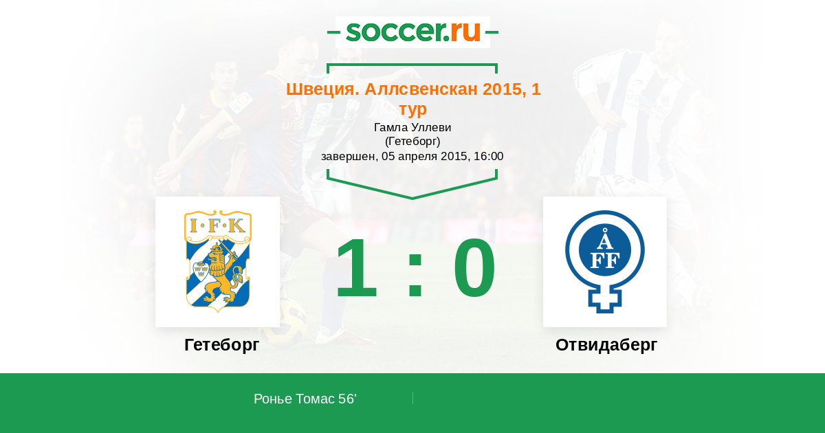 Протокол матча Гетеборг против Отвидаберг
