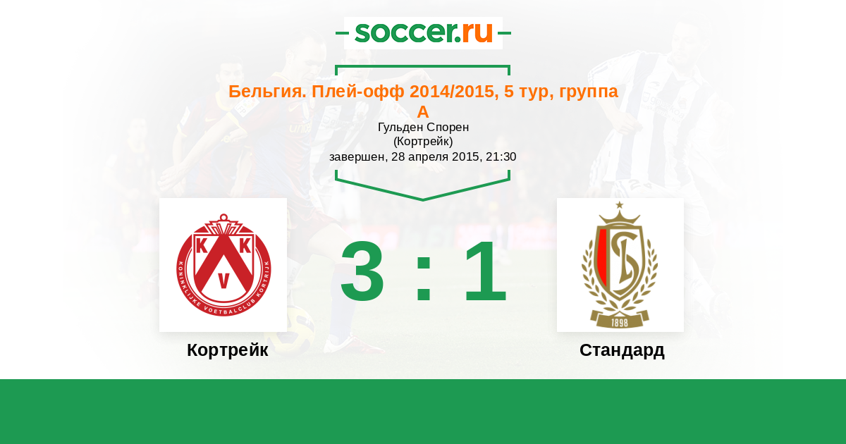Бельгия. Про-Лига 10.05.2015 Стандард Логотип футбольный клуб Стандард (Льеж) 4:0 Логотип футбольный клуб Кортрейк Кортрейк