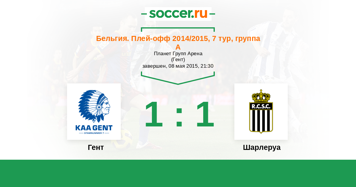 Бельгия. Про-Лига 11.04.2015 Шарлеруа Логотип футбольный клуб Шарлеруа 2:1 Логотип футбольный клуб Гент Гент