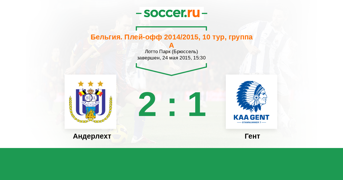 Бельгия. Про-Лига 30.04.2015 Гент Логотип футбольный клуб Гент 2:1 Логотип футбольный клуб Андерлехт (Брюссель) Андерлехт