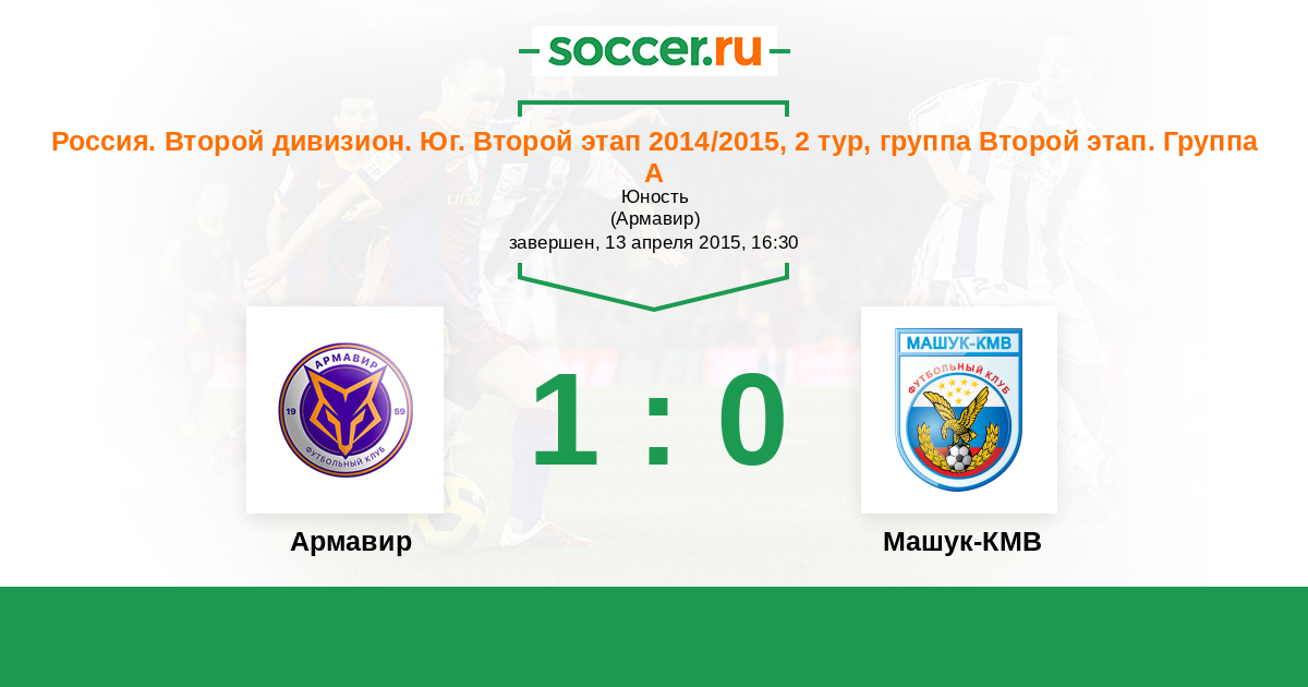 Россия. Вторая лига. Группа 1 09.05.2015 Машук-КМВ Логотип футбольный клуб Машук-КМВ (Пятигорск) 1:3 Логотип футбольный клуб Торпедо Армавир Торпедо Армавир
