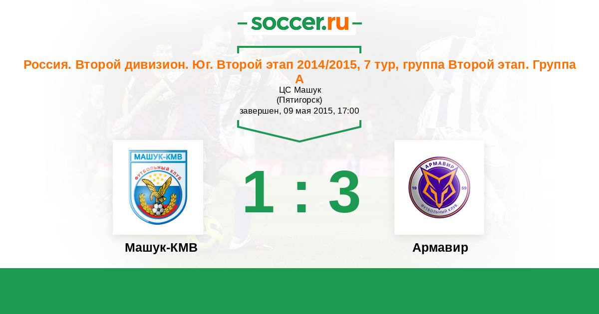 Россия. Вторая лига. Группа 1 13.05.2014 Торпедо Армавир Логотип футбольный клуб Торпедо Армавир 1:2 Логотип футбольный клуб Машук-КМВ (Пятигорск) Машук-КМВ
