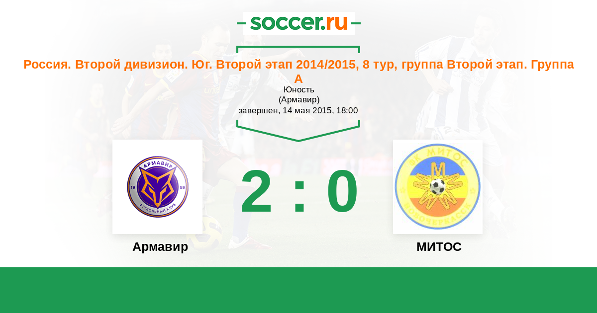 Россия. Вторая лига. Группа 1 24.05.2016 МИТОС Логотип футбольный клуб МИТОС (Новочеркасск) 2:3 Логотип футбольный клуб Афипс (Афипский) Афипс