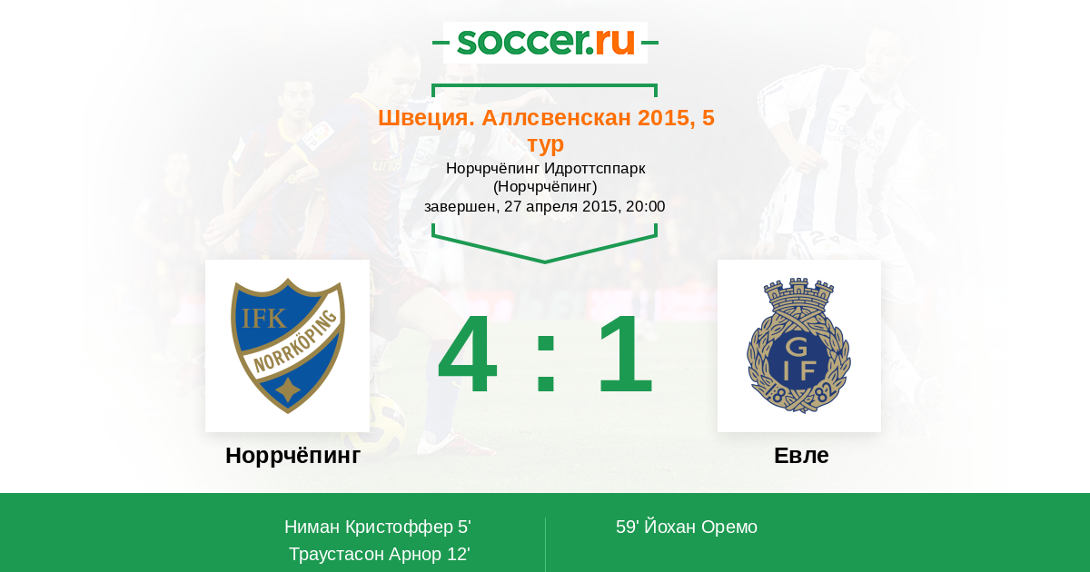 Протокол матча Норрчёпинг против Евле