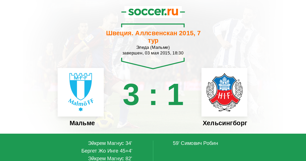 Протокол матча Мальме против Хельсингборг