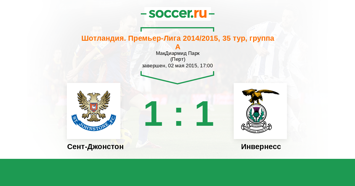 Шотландия. Премьер-Лига 22.02.2014 Сент-Джонстон Логотип футбольный клуб Сент-Джонстон (Перт) 0:1 Логотип футбольный клуб Инвернесс Инвернесс