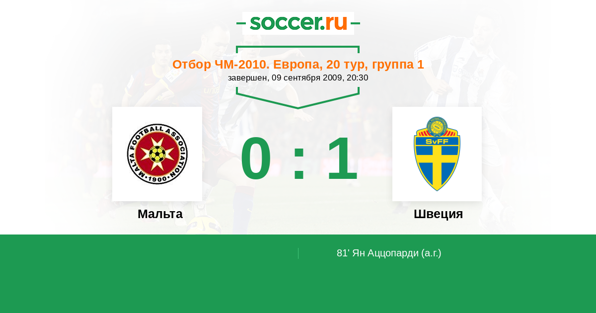 Протокол матча Мальта против Швеция