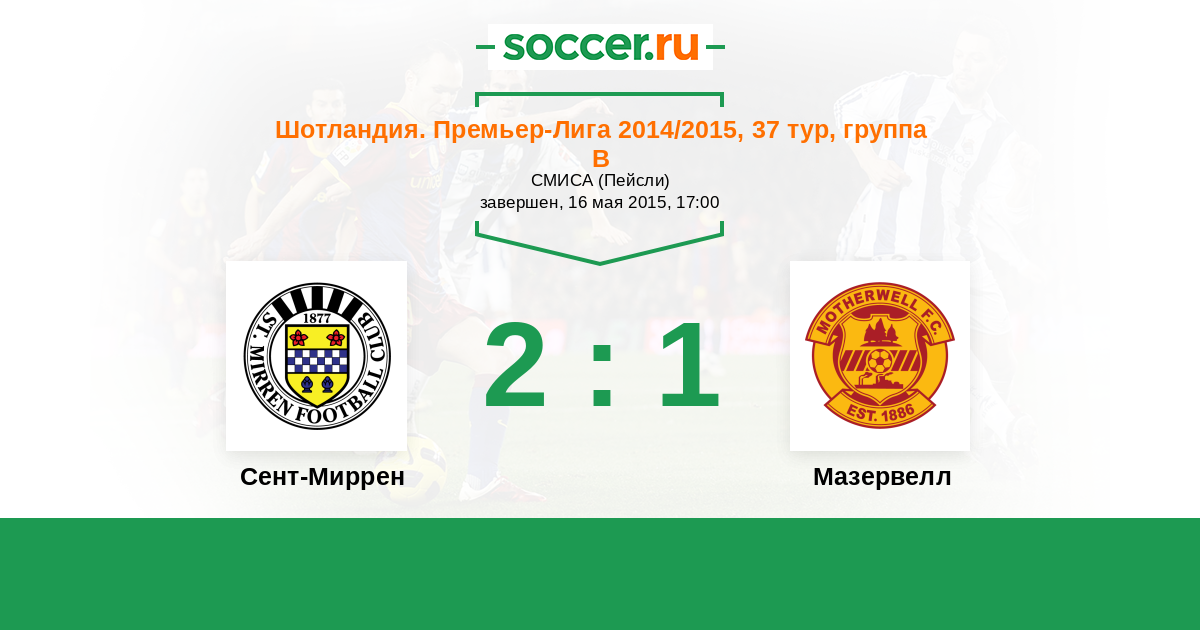 Шотландия. Премьер-Лига 07.04.2015 Мазервелл Логотип футбольный клуб Мазервелл 5:0 Логотип футбольный клуб Сент-Миррен (Пейсли) Сент-Миррен
