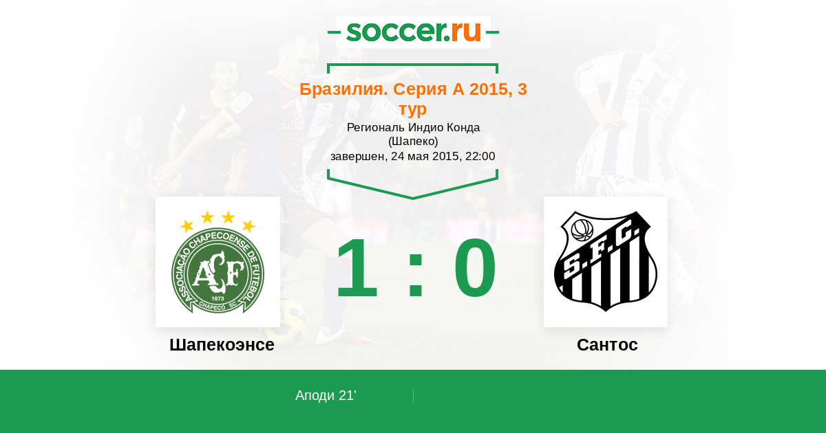 Протокол матча Шапекоэнсе против Сантос