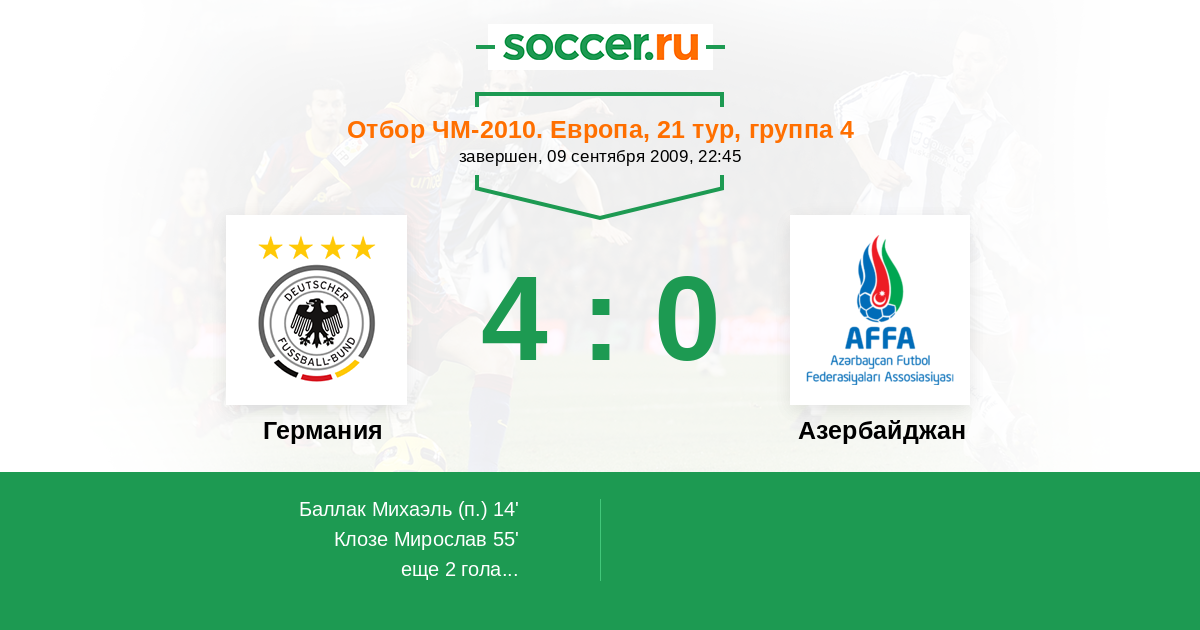 Протокол матча Германия против Азербайджан