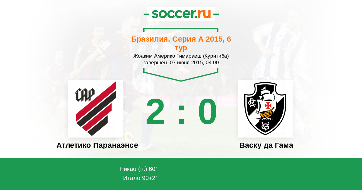 Протокол матча Атлетико Паранаэнсе против Васку да Гама