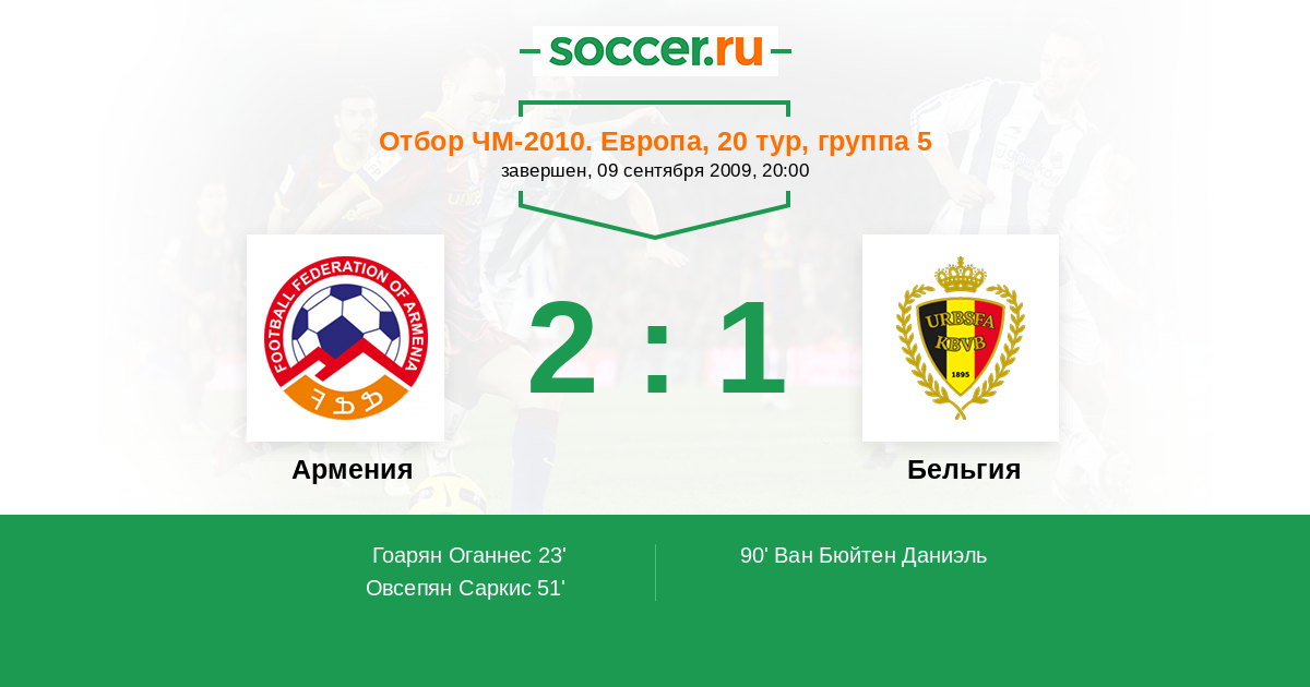 Протокол матча Армения против Бельгия