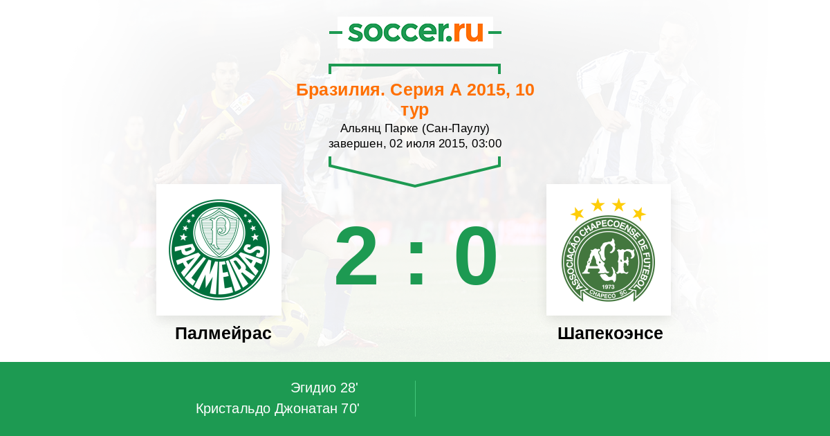 Протокол матча Палмейрас против Шапекоэнсе
