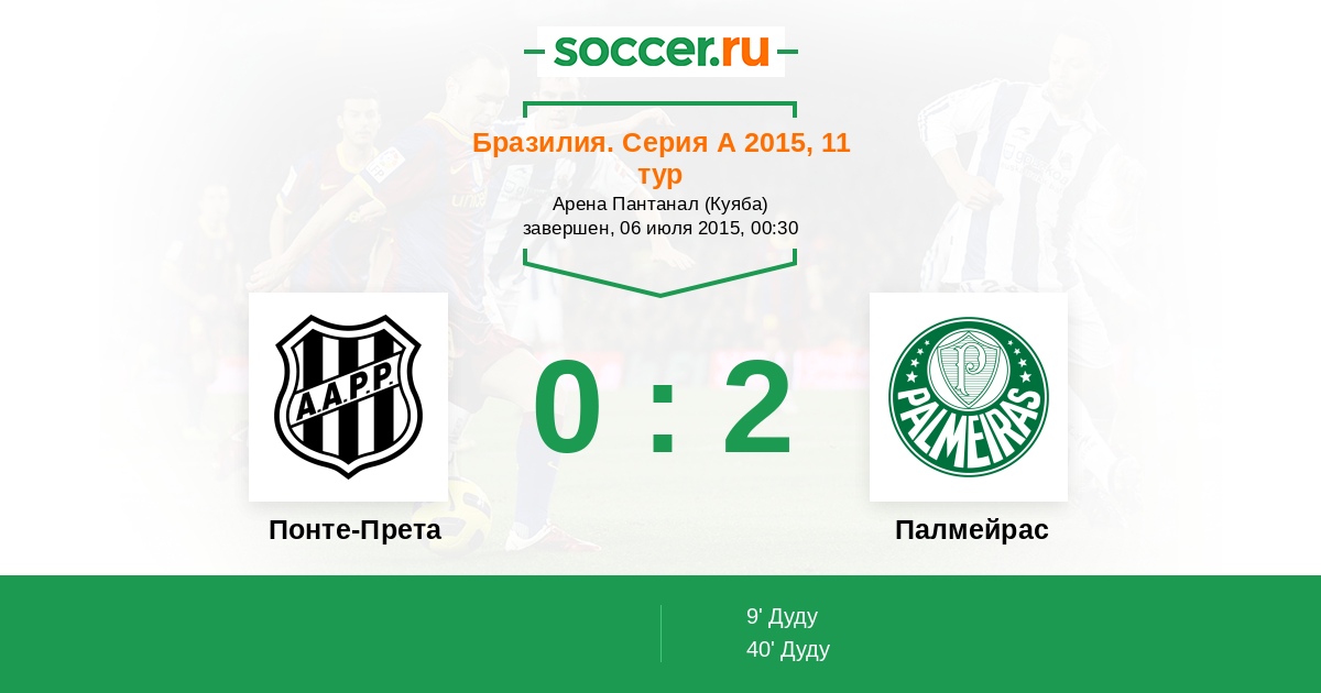 Протокол матча Понте-Прета против Палмейрас