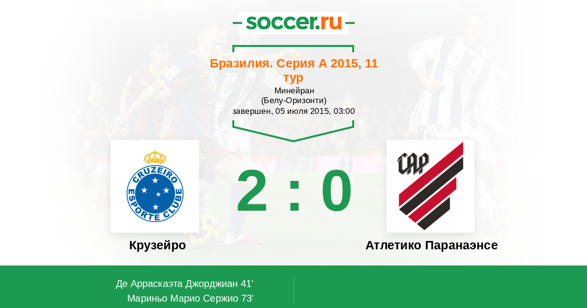 Протокол матча Крузейро против Атлетико Паранаэнсе