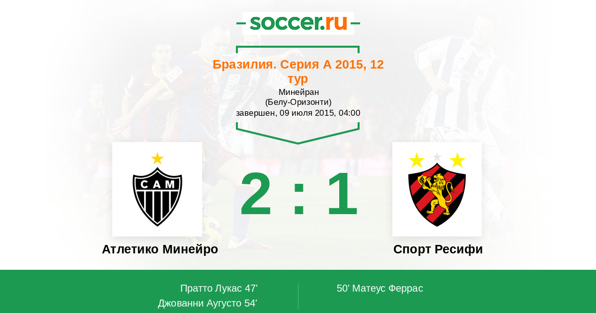 Протокол матча Атлетико Минейро против Спорт Ресифи