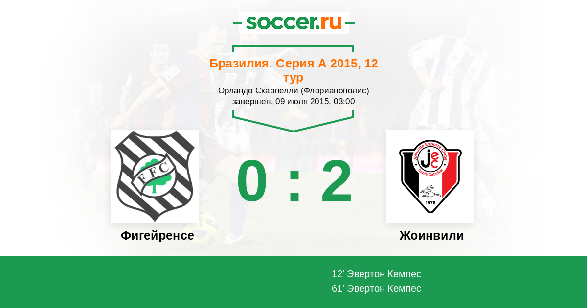 12' (0:1) Эвертон Кемпес (9) (Криспим Лукас (10))