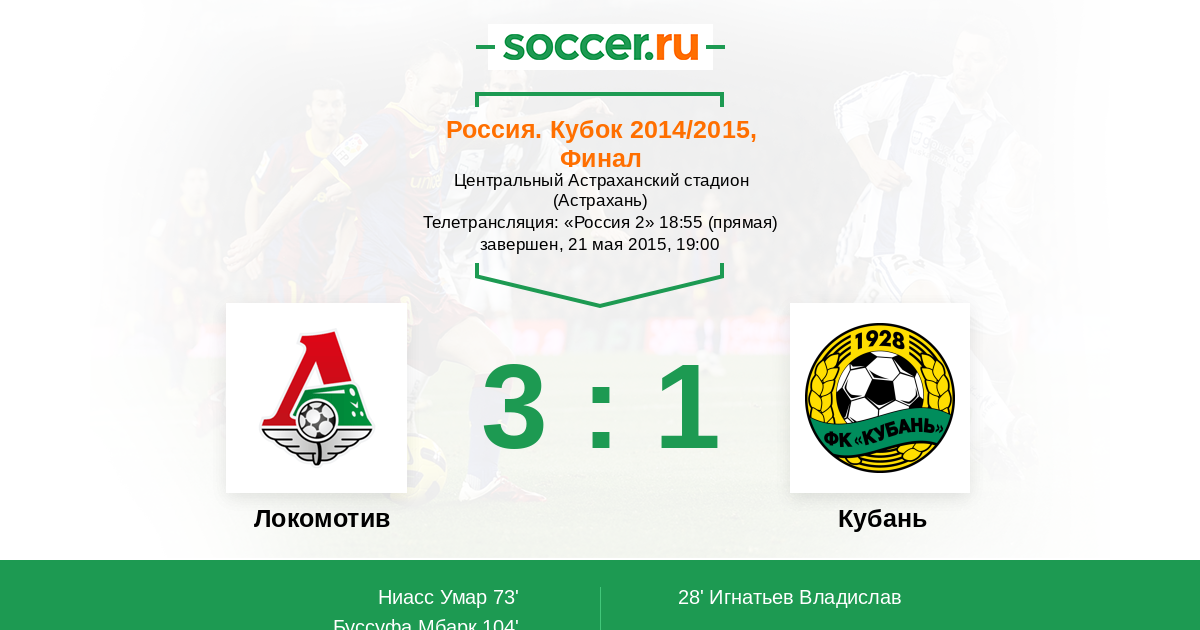 Протокол матча Локомотив против Кубань