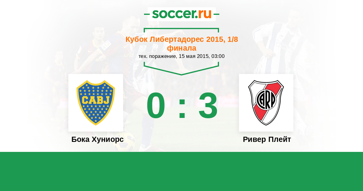 Кубок Либертадорес 08.05.2015 Ривер Плейт Логотип футбольный клуб Ривер Плейт (Буэнос-Айрес) 1:0 Логотип футбольный клуб Бока Хуниорс (Буэнос-Айрес) Бока Хуниорс