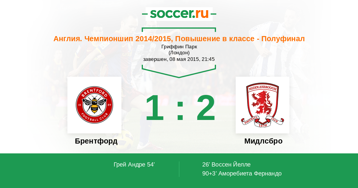 Протокол матча Брентфорд против Мидлсбро