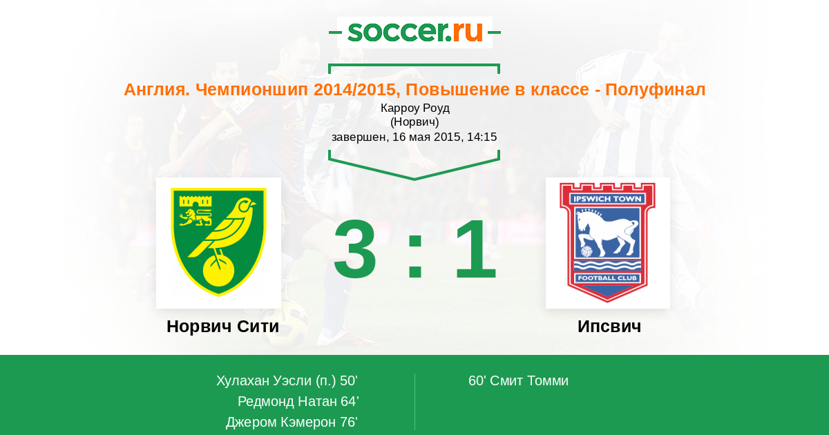 Протокол матча Норвич Сити против Ипсвич