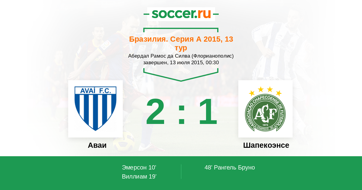 Протокол матча Аваи против Шапекоэнсе
