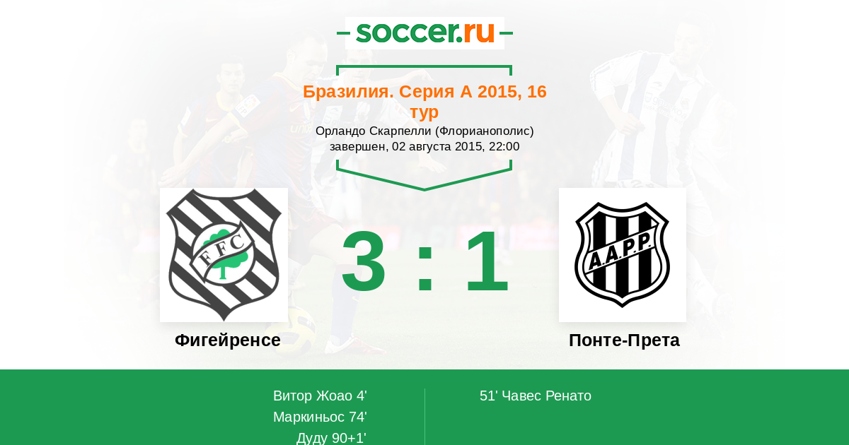 51' (1:1) Чавес Ренато (3) (Фелипе де Оливейра (10))