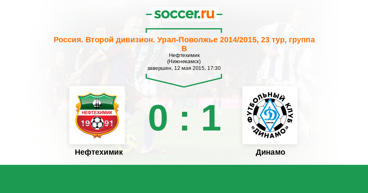 Россия. Вторая лига. Группа 4 21.08.2015 Динамо Киров Логотип футбольный клуб Динамо Киров 0:1 Логотип футбольный клуб Нефтехимик (Нижнекамск) Нефтехимик