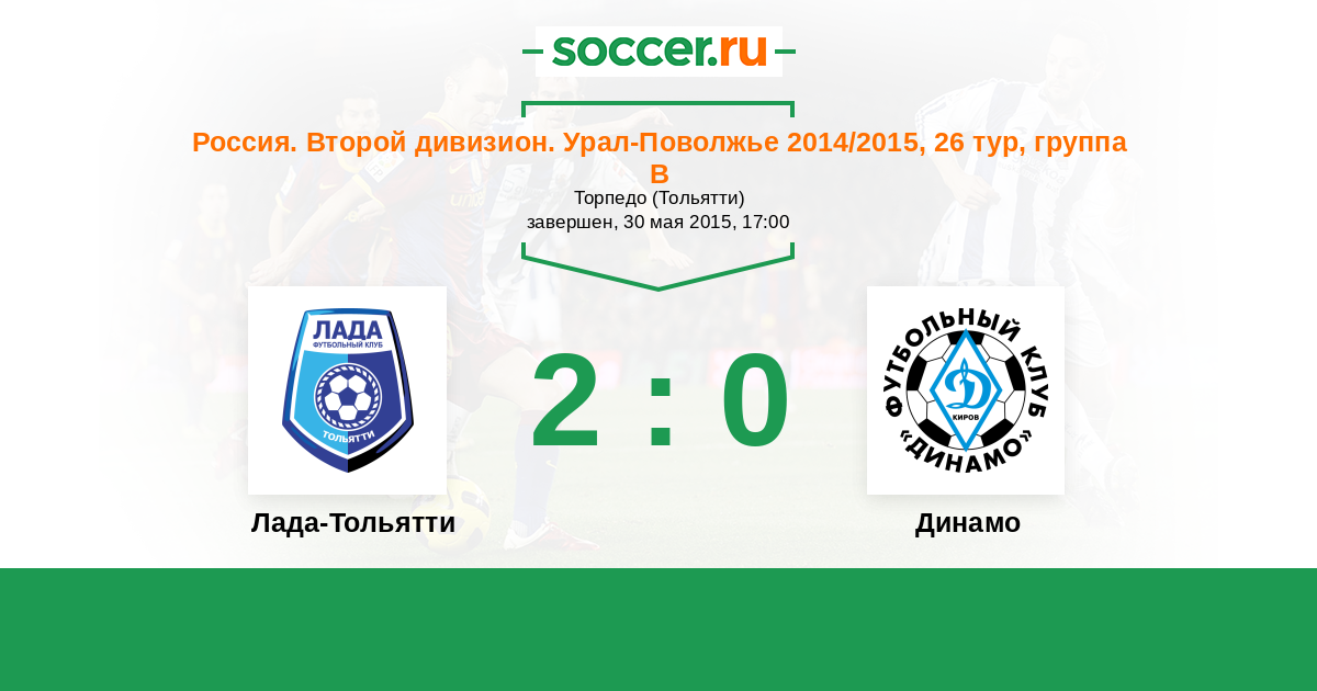 Россия. Вторая лига. Группа 4 05.06.2014 Лада-Тольятти Логотип футбольный клуб Лада-Тольятти 1:2 Логотип футбольный клуб Динамо Киров Динамо Киров