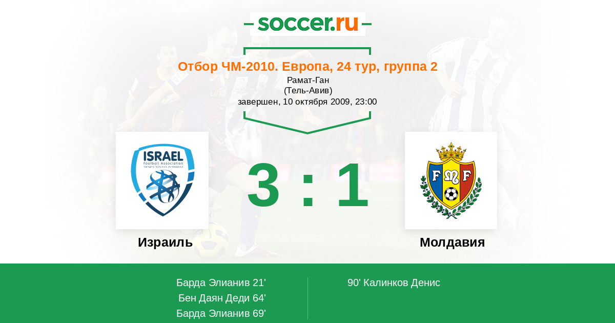 Протокол матча Израиль против Молдавия