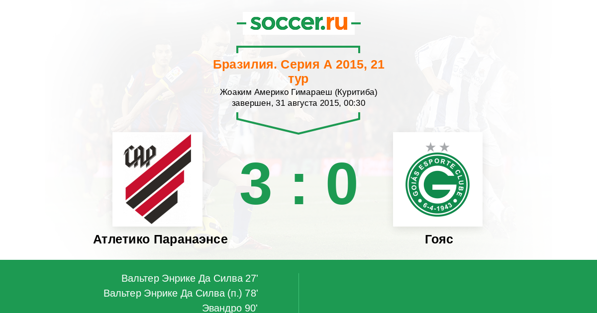 Протокол матча Атлетико Паранаэнсе против Гояс