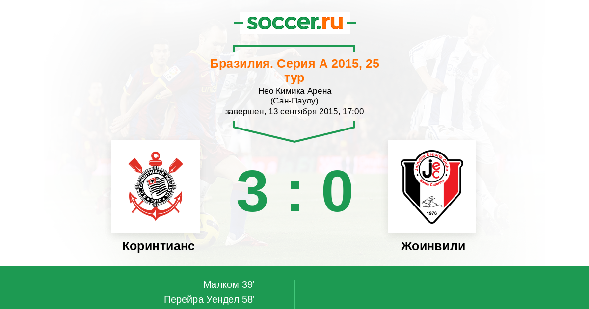 Протокол матча Коринтианс против Жоинвили