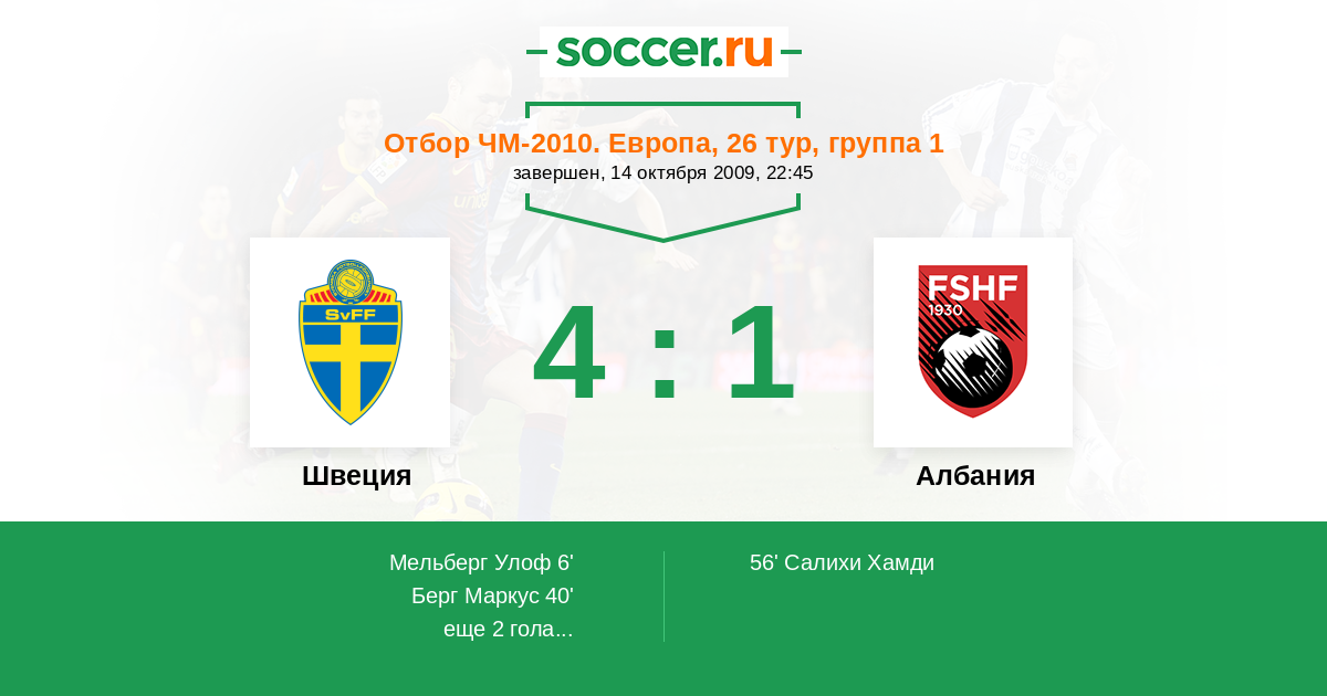 Протокол матча Швеция против Албания