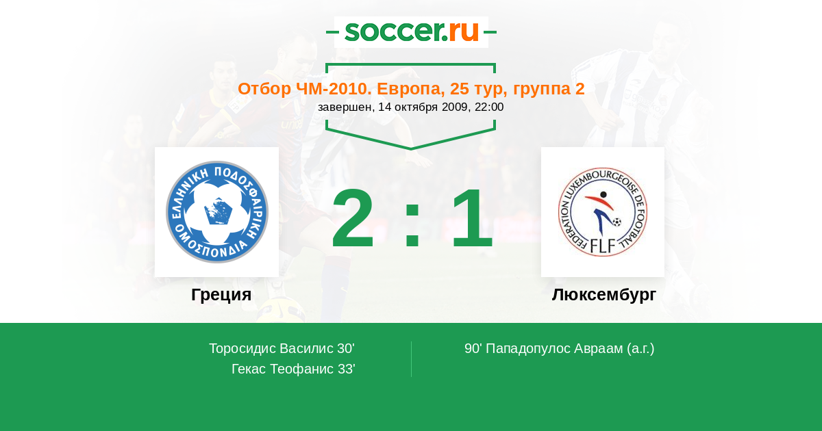 Протокол матча Греция против Люксембург