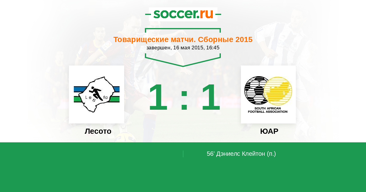 Протокол матча Лесото против ЮАР