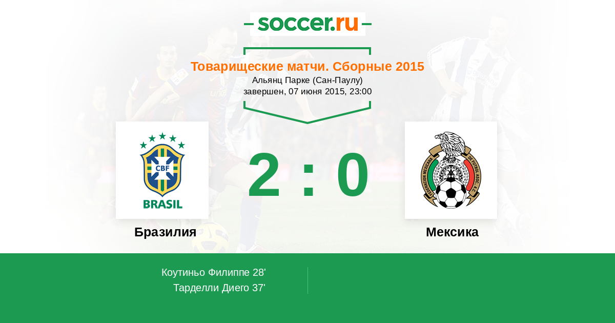 Протокол матча Бразилия против Мексика
