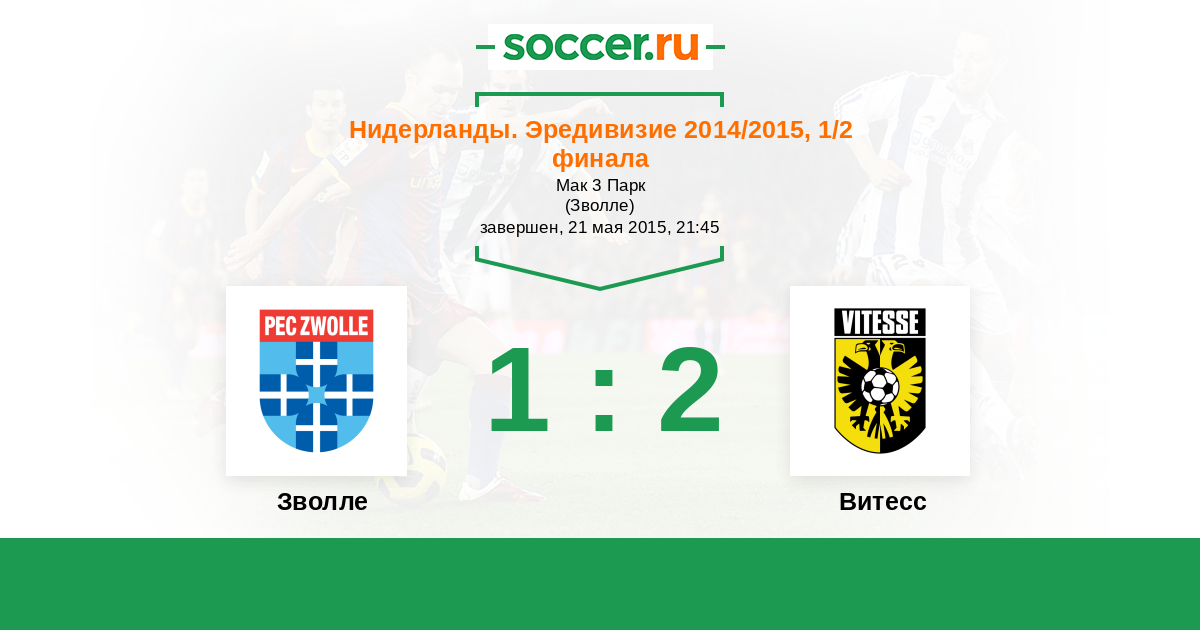 Нидерланды. Эредивизи 24.05.2015 Витесс Логотип футбольный клуб Витесс (Арнем) 1:1 Логотип футбольный клуб Зволле Зволле