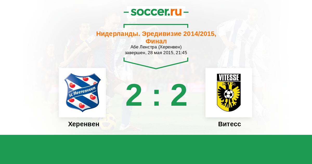 Нидерланды. Эредивизи 31.05.2015 Витесс Логотип футбольный клуб Витесс (Арнем) 5:2 Логотип футбольный клуб Херенвен Херенвен