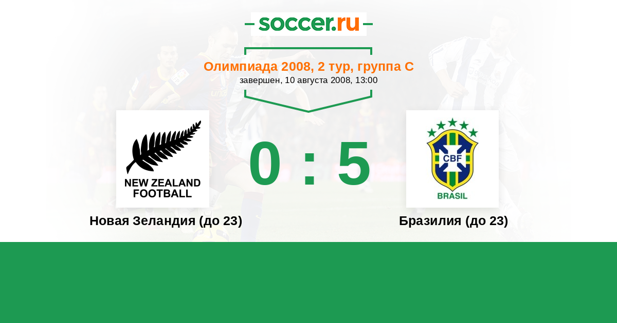 История матча Новая Зеландия (до 23) против Бразилия (до 23)