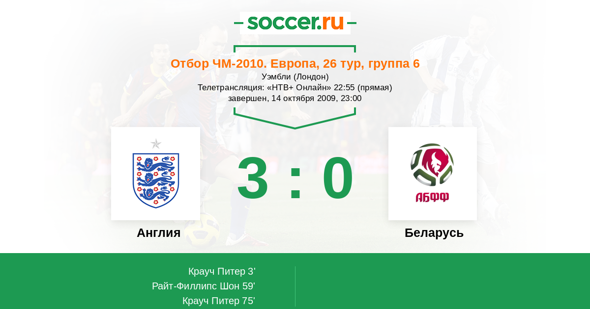 Протокол матча Англия против Беларусь