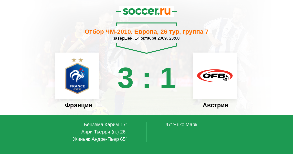 Протокол матча Франция против Австрия