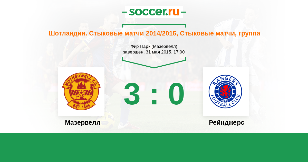 Шотландия. Премьер-Лига 28.05.2015 Рейнджерс Логотип футбольный клуб Рейнджерс (Глазго) 1:3 Логотип футбольный клуб Мазервелл Мазервелл