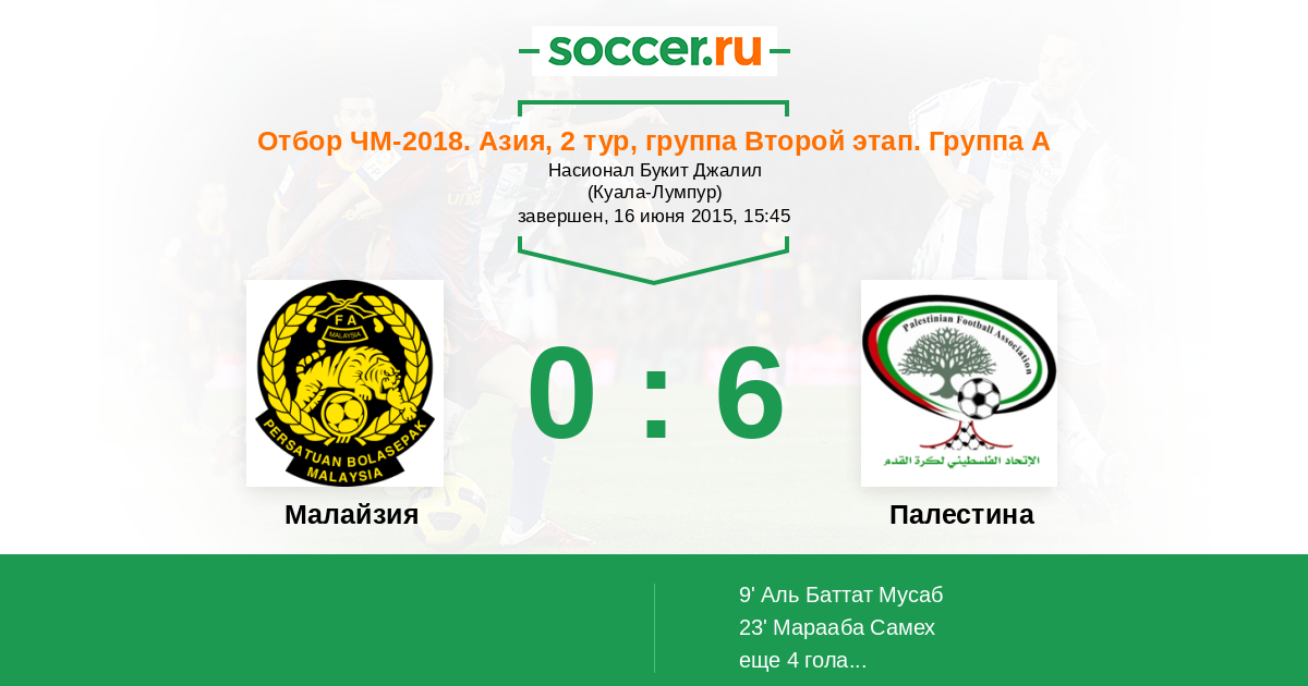 Протокол матча Малайзия против Палестина