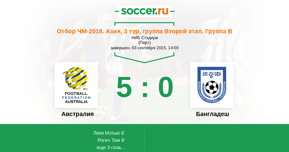 20' (3:0) Автогол Барман Топу