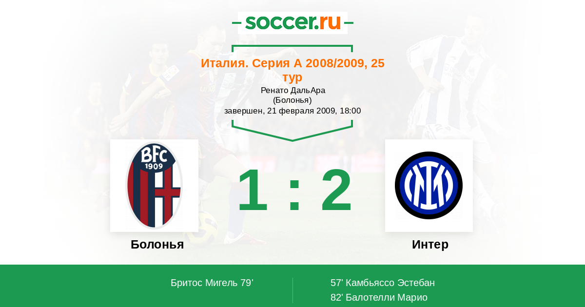 Протокол матча Болонья против Интер