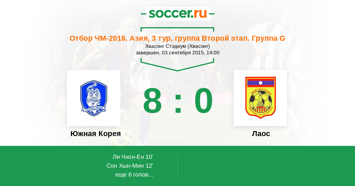 Протокол матча Южная Корея против Лаос
