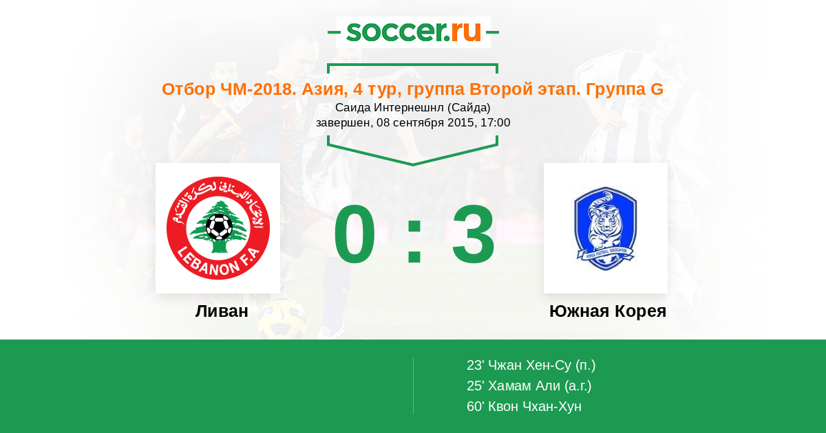 Протокол матча Ливан против Южная Корея