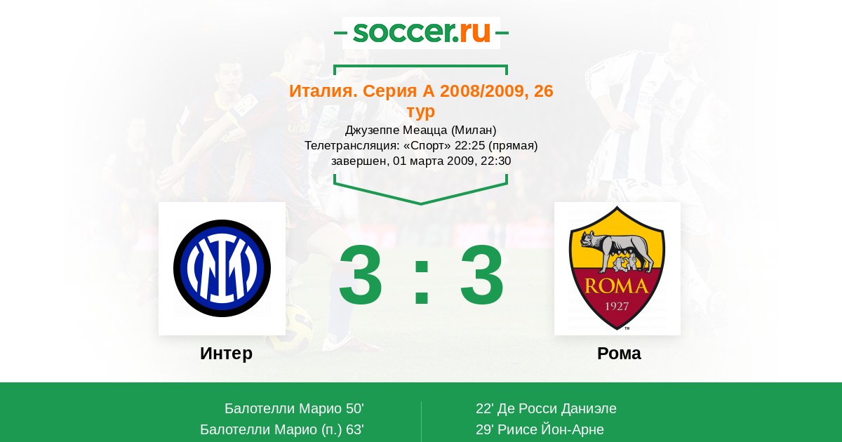 Протокол матча Интер против Рома
