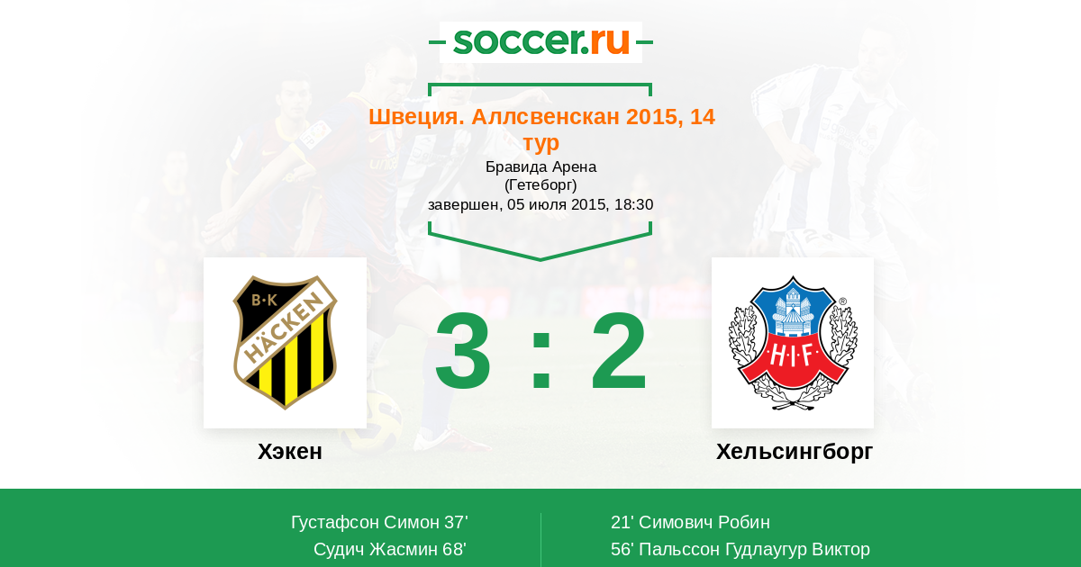 Протокол матча Хэкен против Хельсингборг